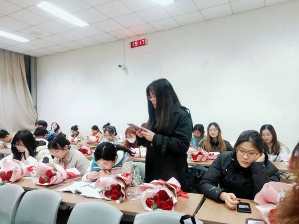 活动伊始,团支部副书记张斌傲向支部女生表达思美节祝福,随后由团支部副书记张斌傲代表支部全体男生向在座的每位女生送花,整个送花环节仪式感满满。送花环节结束后,团支部所有女生携花进行合照,记录这个美好时刻。