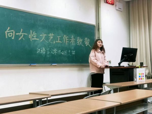 值此“思美节”来临之际,为更好了解女性文艺工作者,向她们致以崇高敬意,汉语言文学1902团支部于3月7日在南堂112教室开展“向女性文艺工作者致敬”主题团日活动,汉语言文学1902团支部全员参与。