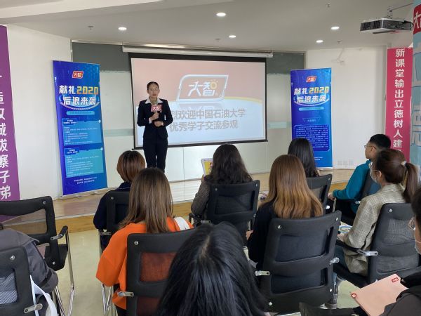本次活动的主题为“走进大智,共赢未来”,共设三大流程。首先,大智集团人力资源部周盛琳向参观师生介绍了大智教育集团概况,并带领师生参观了大智工作环境与党政建设情况。整齐安静的备课区域,庄严肃穆的党建楼层,学习氛围浓厚的教学部,吸引着参观人员的目光,不少学生发出感慨,纷纷表示大智集团的企业氛围昂扬向上、如家一般。周盛琳也提到了疫情之下教育行业的现状及公司现招聘情况。“原来疫情对教育行业打击如此之大,这让我对教育行业有了更深入的认识。“研究生赵慧感慨道。