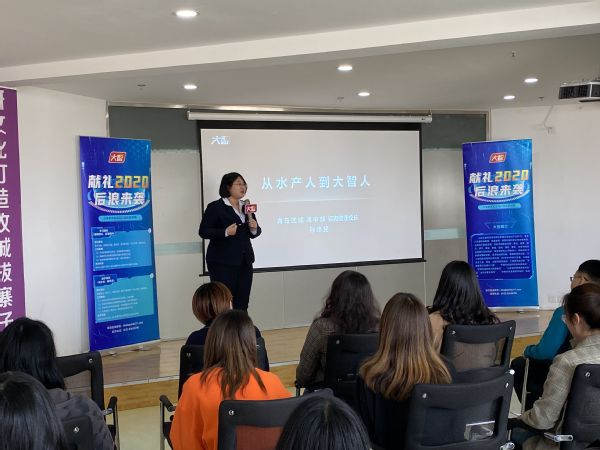 参观完毕,大智集团咨询助理校长孙烽斐从个人成长经历出发,分享了自己从“水产人”到“大智人”的求职经验以及在大智集团的成长故事,着重介绍了大智集团的人才培养机制和家文化,鼓励学生认清就业形势,规划职业方向,脚踏实地、追求梦想。