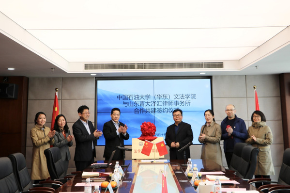 4月15日,我院与青大泽汇律师事务所法学实践教育基地签约仪式在青大泽汇律师事务所本部举行。院长王学栋、法学系主任孙增芹、支部书记康雷闪、副主任谌爱华,山东青大泽汇律师事务所主任魏克泰、山东青大泽汇(黄岛)律师事务所主任王永久、合伙人郑晶、律师张静等共同出席。