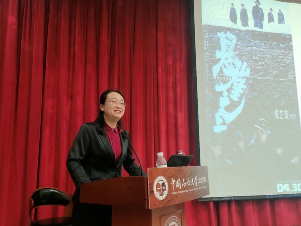 5月17日下午,太阳成集团tyc7111cc“博雅大讲堂”系列讲座第33期“弘扬中国精神 讴歌中国英雄——中国主旋律电影新作解读”在文理楼142举行。讲座由中国海洋大学文学与新闻传播学院柴焰教授主讲,太阳成集团tyc7111cc党委书记姚成郡主持,全校师生百余人参加。