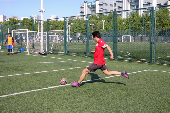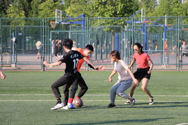 比赛开始,双方球员很快进入状态。学生队初生牛犊不怕虎,配合默契,猛烈进攻,曾经的翩翩少年已经能独当一面。久经沙场的老师队也不甘示弱,平时在讲台上妙语横生的先生们,摇身一变成为足球场上的热血健将。“大学四年,终于有幸能够在课堂外见识到老师们潇洒帅气的一面。与老师们一同站在球场的感觉微妙而兴奋,回想起曾经课下与魏老师讨论前夜球赛,罗舒老师在讲台上夸耀球技,一瞬间仿佛他们不仅是师长,更是挚友和伙伴。也感谢场边为我们加油喝彩的老师和学院足球队的同学们,他们像家人一样始终给予我拼搏的动力和希望。”宋毅感慨的说道。