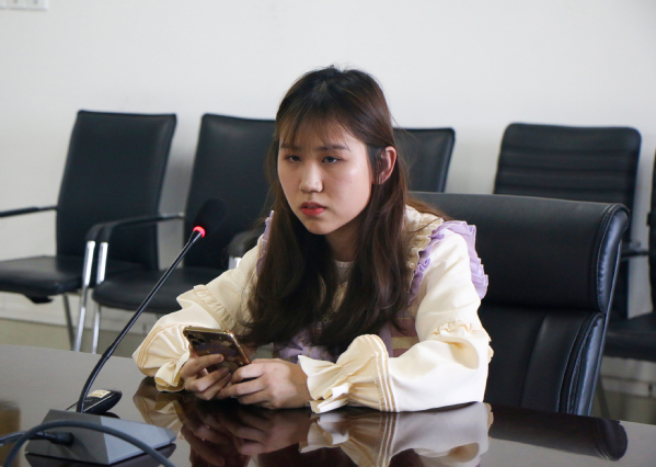 于子涵就如何选择网课与线下课分享自己的见解。 任月 摄