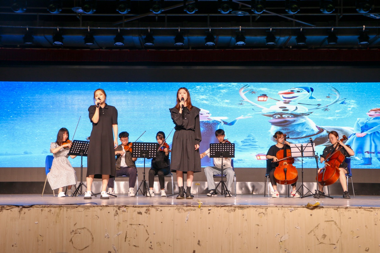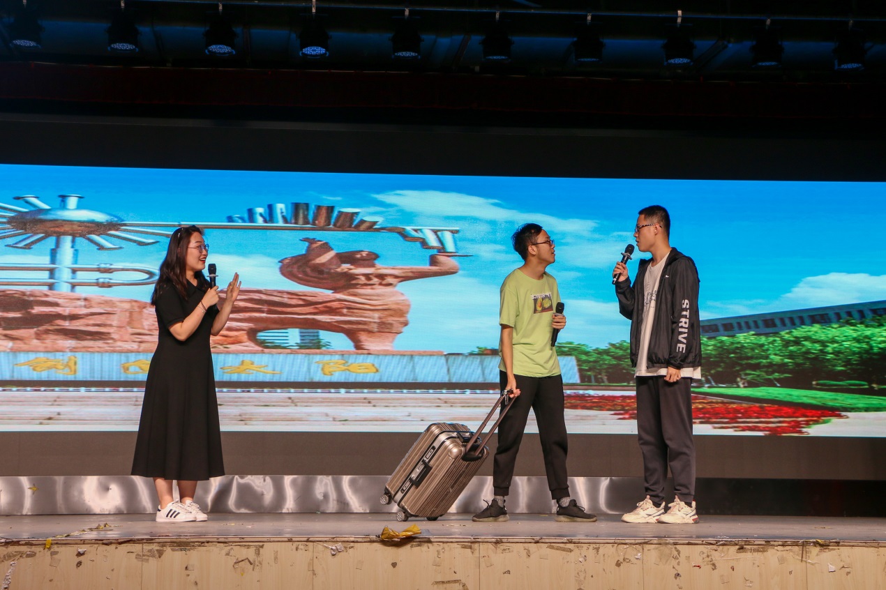 小品《夏洛特烦恼》调侃幽默,学生们用简单的话语将熟悉激情的青春故事重新演绎,“一次就好,我带你去看天荒地老……”夏洛、秋雅、冬梅……这些熟悉的旋律与名字让大家或许看到了自己所向往的青涩又懵懂的纯纯的恋爱,以及在心底立志奋发图强考研升学的时光。