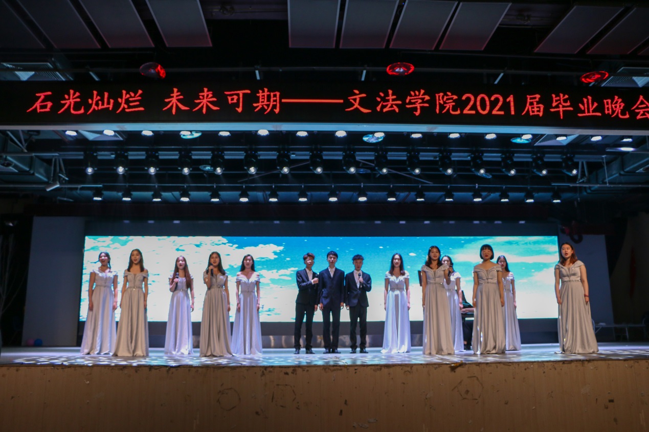 “石光灿烂,未来可期”,毕业季视频中一个个镜头记录着毕业学子的高光时刻,其中深藏着无数学子的回忆与感动。“这次晚会是一场艺术课,又是一场感恩课。”晚会最后,2017级辅导员于露上台给学生们上了最后一课,叮嘱学生常怀感恩之心,脚踏实地,去迎接未来的新生活。“一树梨花一溪月,不知今夜属何人,”太阳成集团tyc7111cc毕业晚会在快门中永远定格,文法学子将扬帆起航,开启属于他们的精彩人生。