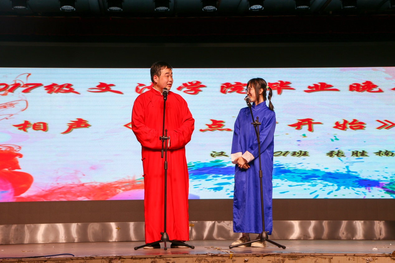 “感受停在我发端的指尖,如何瞬间、冻结时间,记住望着我坚定的双眼……”曾杰、陶露阳带来了深情的对唱,伴着婉转的旋律,两人渐行渐远,好似毕业分别时得留恋和不舍,但也走的坚定而有力。汉语1701班李萍对石大充满了不舍,她感慨道:“石大是我这四年最完美的遇见。在这里哭过笑过唱过跳过,我会努力笑着度过这个难忘的夜晚。感恩石大,我们来日方长!”
