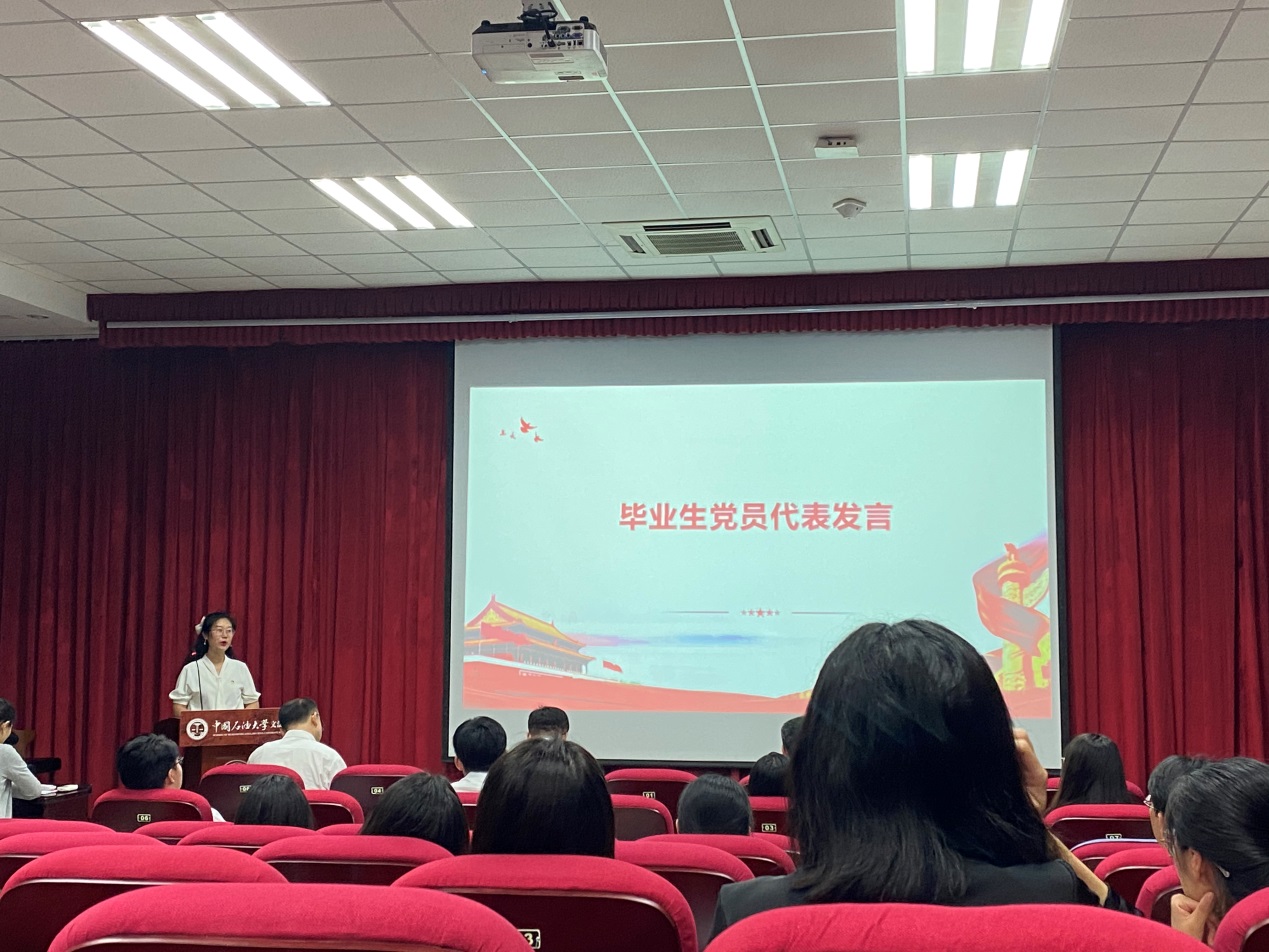 随后,全体毕业生党员重温了入党誓词,与会同志面向党旗,举起右手,庄严宣誓。毕业生党员代表焦萍发言,表达对学校培育的感恩之情,并呼吁坚定理想信念、慎终如始,时刻自重自警自省自励,做有本领、有理想、有担当的人。