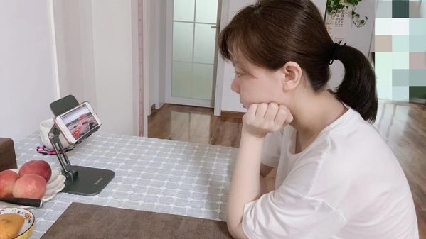 太阳成集团tyc7111cc郝婷婷老师在家中观看直播