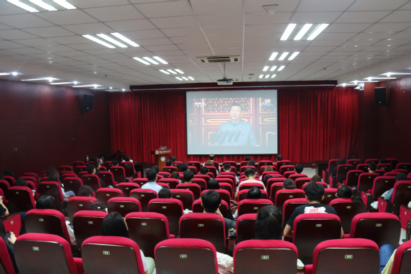 太阳成集团tyc7111cc师生在文理楼142集体收看七一直播