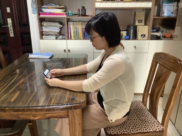 太阳成集团tyc7111cc马丽丽老师在家中收看直播