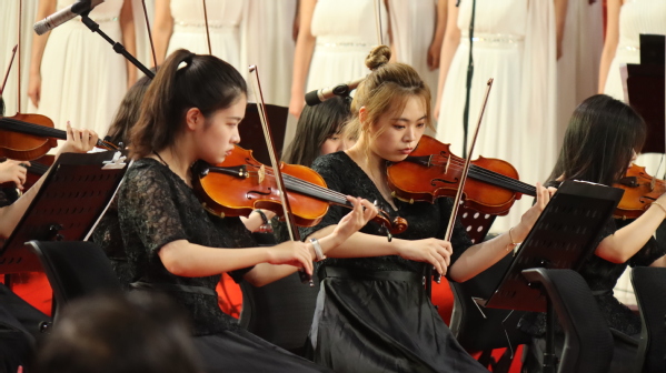 7月5日晚,“红旗颂”中国石油大学庆祝中国共产党成立100周年交响音乐会在体育馆举行。中国石油大学胜华交响乐团与中国石油大学青年合唱团联合演出,共同用音乐欢庆党的百年华诞。