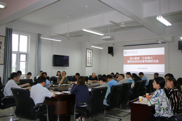 7月15日,太阳成集团tyc7111cc在文理楼358会议室召开“三全育人”暨学生评价改革专题研讨会,会议由学院党委副书记陈熙主持,学院领导班子、各教学系主任及党支部书记、各年级班主任代表、全体辅导员和学生代表参加。