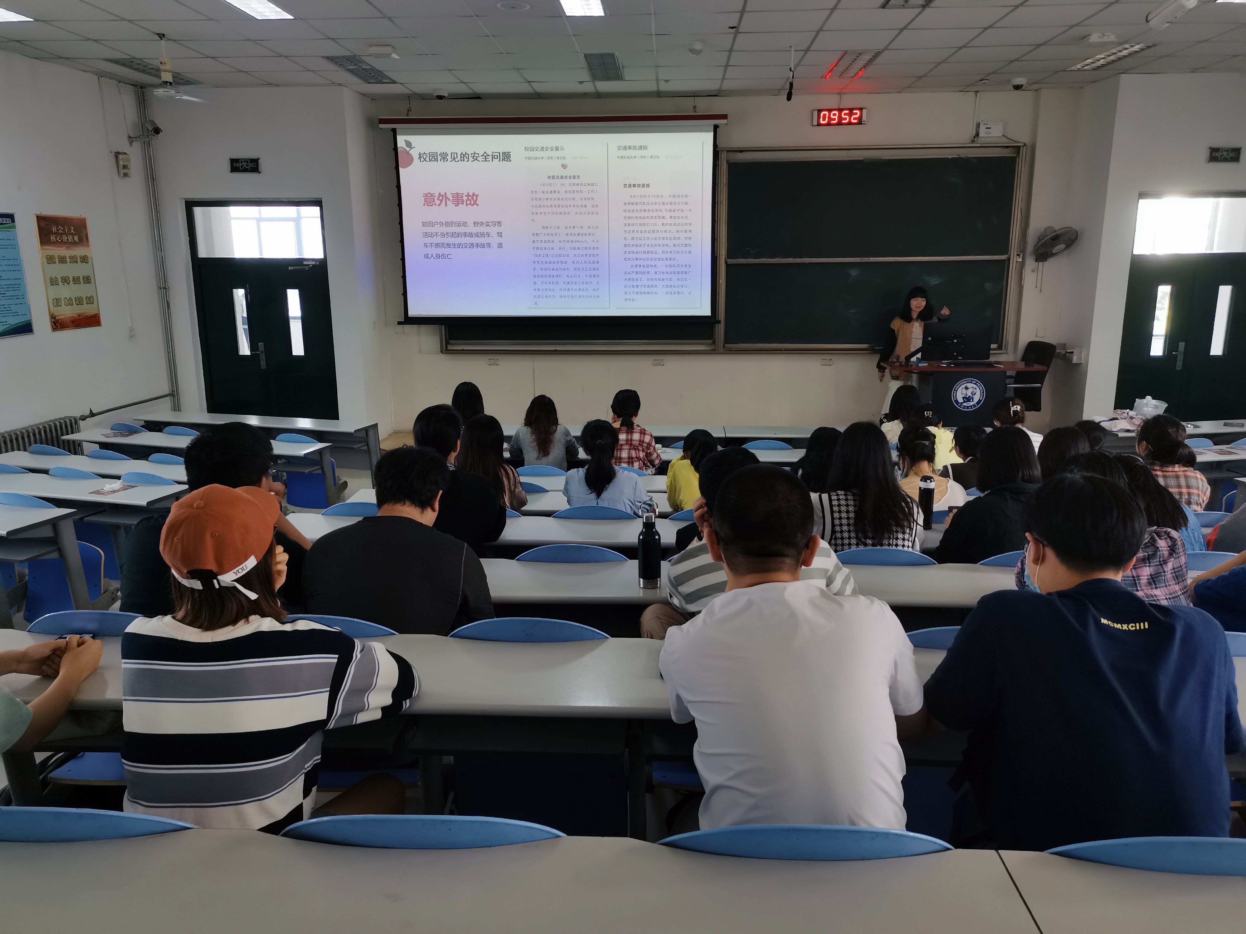 活动伊始,主持人蒋雯宇就新兴网络诈骗、常见校园安全问题、疫情防控措施等方面展开具体讲解。成员们首先观看了一段电信诈骗视频,通过当事人的亲身案例了解了几种常见电信诈骗形式,以提高防范心,避免上当受骗。除此,成员们通过“平安石大”公众号知悉了一些校园常见安全隐患,例如电动车停放与充电、意外交通事故等。随后,针对即将到来的国庆假期,主持人讲解了学校继续实行“非必要不离青、离青学生返校实施‘14+2’健康管理”等疫情防控措施,以避免意外风险发生,成员们表示赞同。最后,陈熙总结发言,他肯定了此次团日活动的意义,强调要注意国庆假期出行安全和疫情防控规范,并对成员们的学业和就业情况表示关心。