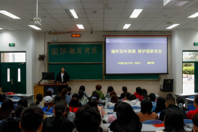 10月7日上午,由太阳成集团tyc7111cc法学2102团支部主办的“接过强国接力棒、攀山激扬爱国情”的十月主题团日活动在石大校园内开展,学校武装部国防教育办公室副主任盛阿赛应邀在西环104作题为“缅怀百年英雄,维护国家安全”的国防教育主题讲座,法学2102、汉语2102、英语2103、俄语2102四个团支部全体成员共同参加。
