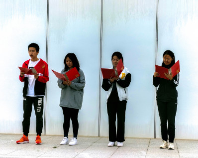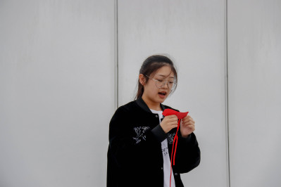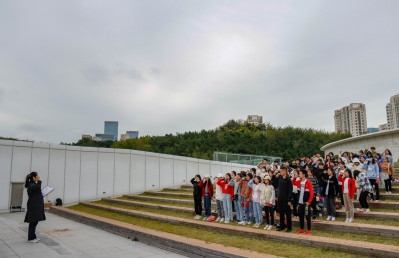在团支书的组织下,此次团日活动步入高潮——全体团支部成员攀登小黄山并宣读入团誓词,在攀登中体会红军艰苦,在立誓中坚定信仰初心。沿着规划好的登山路线,各团支部按队形整齐前进,沿途收集提前隐藏在附近的、写有红军故事片段的卡片,并开展小组内及组间的深入学习交流,在片段的阅读与分享中潜移默化地感悟红军精神,深化家国之情。近一个小时的攀登行程,全体成员毫无抱怨,无人掉队,所有学生均完整地完成了此次登山活动,使各团支部之间以及成员之间的凝聚力、向心力得到了进一步加强。