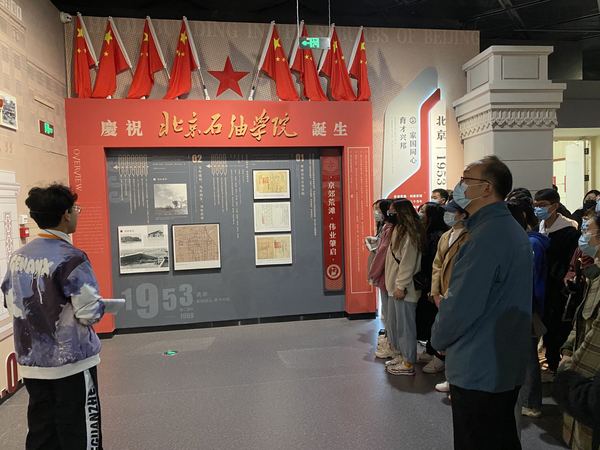 校史馆由前厅、序厅、序章、编年体展区、专题展区、愿景厅、艺术馆等部分组成,集中展现了学校68年来与共和国发展共命运、与祖国石油工业同呼吸、与石油高等教育共奋进的光辉历程,序厅雕塑“石大荣光”由圆雕“逐梦”、环形浮雕“征程”和卷轴竖雕“赋能”组成,分别代表石大的过去、现在和未来;编年体展厅综合采用现代信息技术和视觉美学,通过图文、实物、多媒体、虚拟影像、立体造型、场景还原等多种方式展现了我校发展历程和文化。