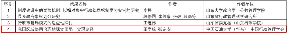 经过近一年的组织与评审,近日山东省委机构编制委员会办公室公布了首届山东省机构编制优秀科研成果评选获奖名单,其中,我院王学栋教授的“我国区域协同治理的现实困局与实现途径”喜获一等奖。本次评选经过多轮评审,共确定优秀科研成果160项,其中一等奖16项,二等奖48项,三等奖96项。
