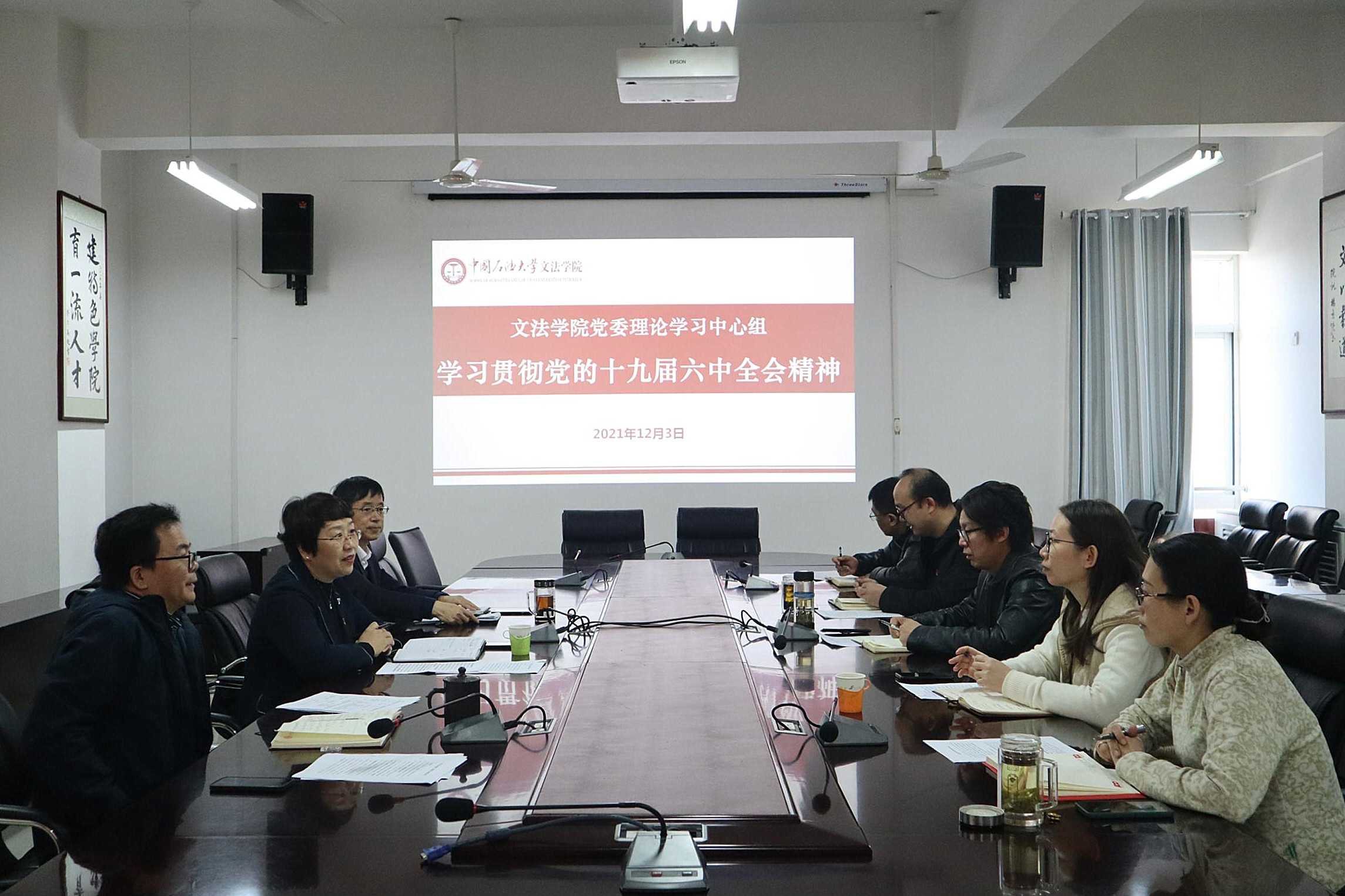 12月3日,太阳成集团tyc7111cc党委理论学习中心组专题学习贯彻党的十九届六中全会精神,学校党委常委、副校长张玲玲参加此次专题学习。