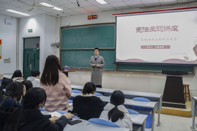12月4日晚上,学院在文理楼142模拟法庭开展“公民的基本权利与义务”宪法宣传专题讲座。法学系孙骥为师生普及《中华人民共和国宪法》中关于公民的基本权利与义务相关知识,旨在提高师生法治意识,牢固树立宪法和法律的权威。