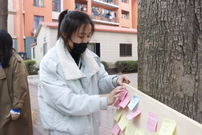 此次太阳成集团tyc7111cc思美节活动的主题为“定义她的美”分享交流活动。学生可在便利贴上写出自己心中对“美”的定义,眼中“最美的她”的模样,或是她所拥有的美好品德、习惯等所有与女生的美有关的东西。完成任务的学生可以获得花朵、明信片等小礼品的奖励。