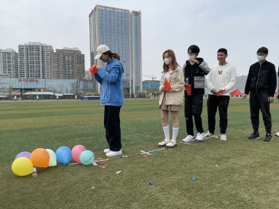 学生们玩气球游戏 沈杏园摄