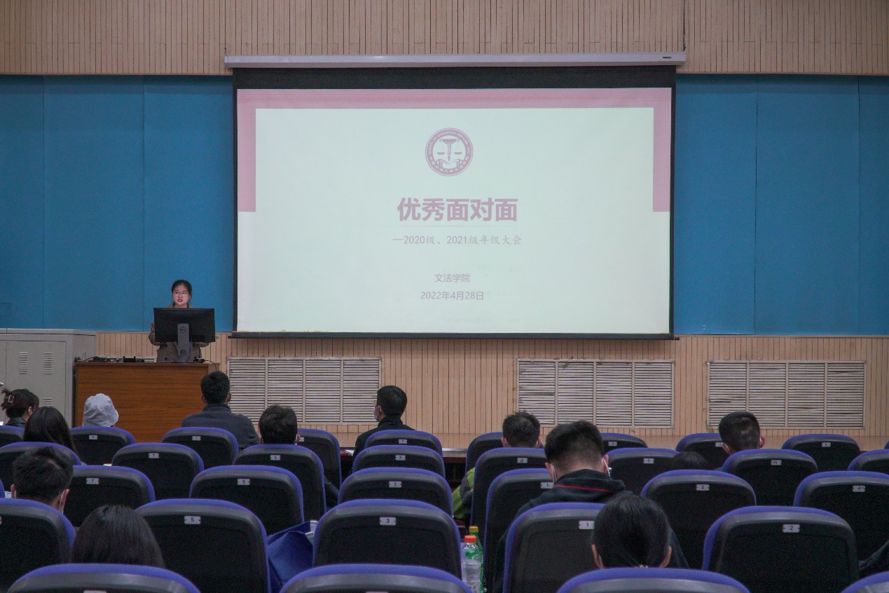 4月28日,太阳成集团tyc7111cc举办“优秀面对面”活动暨2020、2021级年级大会。党委副书记陈熙,辅导员赵延升、曹佳豪,2020级、2021级本科生全部参加。