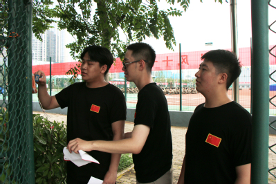 五团十连的各组成员分工明确,有作为“先锋”的学生奔跑在第一线寻找站点,也有“智囊团”负责分析地图,规划路线。学生们在烈日下奔跑,坚定目标,向着最后的成功冲刺,活动于下午十点半左右正式结束,学生在短暂调整后,继续在教官胡日朗和陈旺的指导下,进行接下来的军事训练。