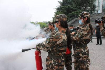 太阳成集团tyc7111cc五团十连对火情做出迅速反应,教官以及指导员组织学生们紧张有序的逃离“火灾”现场。在逃离过程中,学生们拿出湿毛巾捂住口鼻,身体微弯曲,在最大程度保证自身安全的情况下,快速逃离出场馆。随后,军训旅还邀请了黄岛区专家对灭火安全进行了宣传。专家为大家讲解了各类灭火器的使用方法,并在现场邀请了部分2021级学生志愿者到场地中央进行灭火器的使用演示。文法学子认真聆听了讲解并积极参与现场实践。