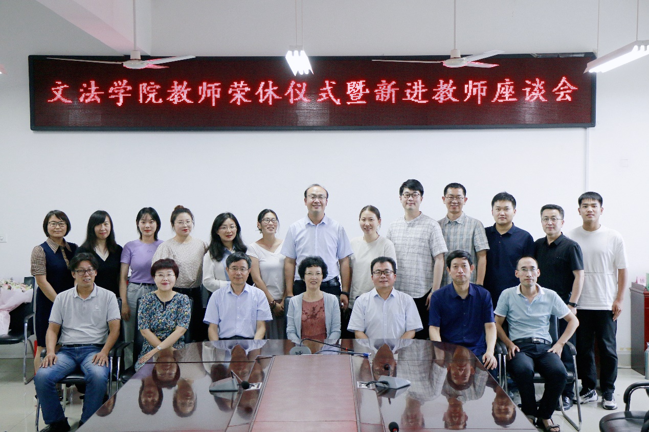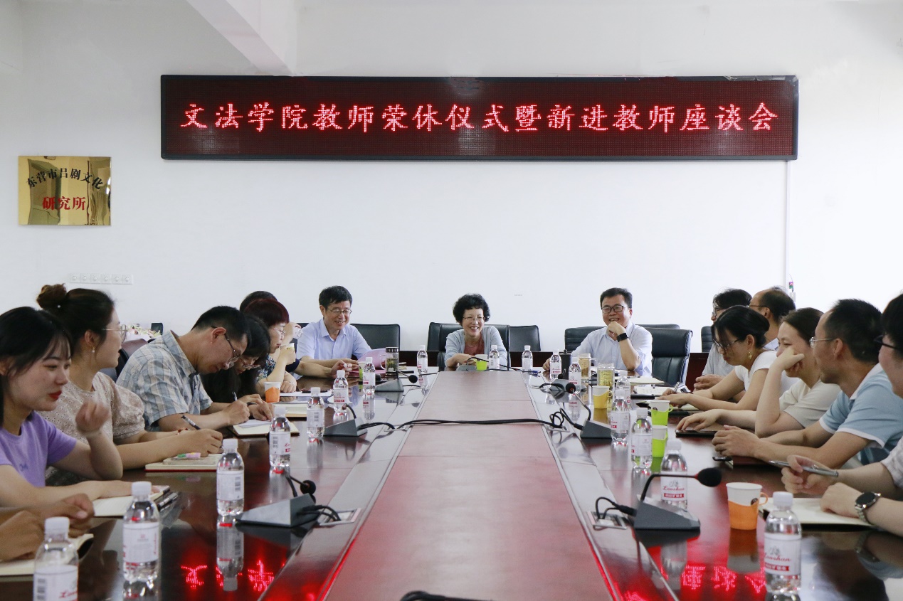 7月13日,学院举行教师荣休仪式暨新进教职工座谈会。荣休教师代表李美子老师,贺小军教授等8位新进教职工,学院领导班子,教授委员会主任、副主任,中国语言文学系、法学系等相关老师参加,会议由党委书记姚成郡主持。
