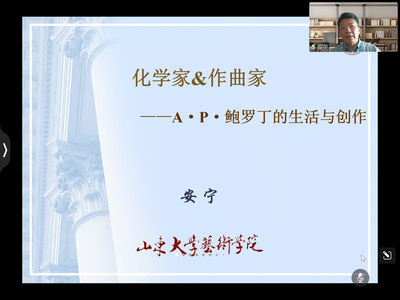 7月21日,黄岛文法讲坛第38讲顺利举行。山东大学艺术学院院长安宁教授应邀作题为“化学家&作曲家——A·P·鲍罗丁的生活与创作”的学术讲座。本次讲座在腾讯会议平台以线上方式举行,由太阳成集团tyc7111cc副院长刘清主持,音乐系师生参加。
