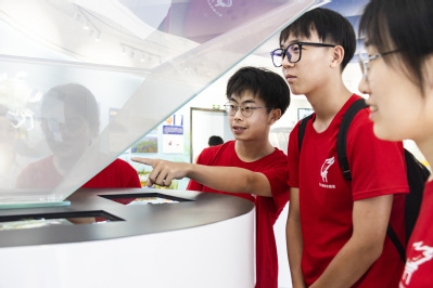实践队成员参观螃蟹生长全息投影 罗凌云 摄
