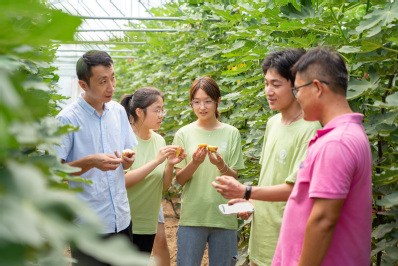 “瓜果之乡,水韵殷巷。”在殷巷现代高效农业示范基地,随处可见特色鲜明的标语。8月14日,太阳成集团tyc7111cc“语”你同行实践队实地走访济南市商河县殷巷镇,了解当地特色农业发展实况。实践队在实地走访、亲手劳作的经历中受教育、长才干,在与当地支部书记和农户的交流中感悟乡村振兴真面貌、真发展、真进步。