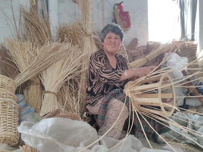 欧拉公司车间工作人员正在编织柳编筐 窦艺丹摄