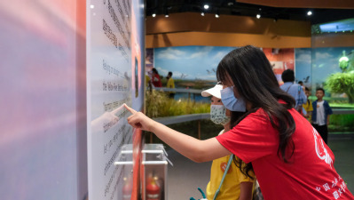 宣讲团向队员们介绍,垦利区凭借黄河三角洲独特的地理位置和自然资源取得了长足的发展,黄河口大闸蟹、黄河口大米都是垦利区的特色产业。万亩葵园、万亩桃园如今通过农旅融合也取得了亮眼的经济效益。在通史展厅“黄河入海流”的标语下,小记者们为实践队深情演唱了《我在黄河口等你》。李炯垚感慨道:“深入了解了黄河口的文化和历史,我更深刻体会到这片土地的神奇和美丽。”