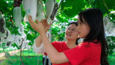 薪火相传实践队员调养葡萄生长情况 于浩然摄