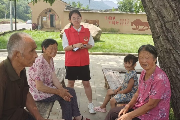 队员李依璇与当地老人交流法律知识 王新妍摄
