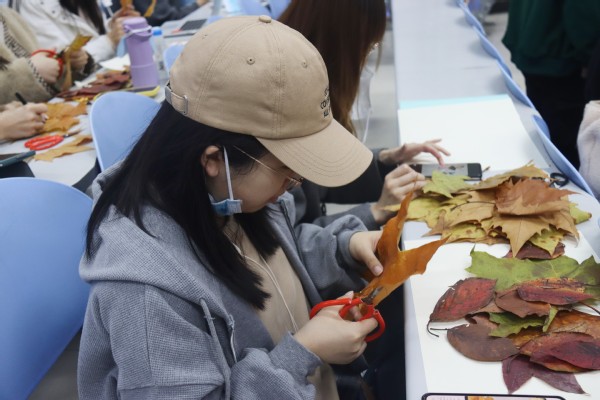 制作秋叶粘贴画 毕庆冉摄