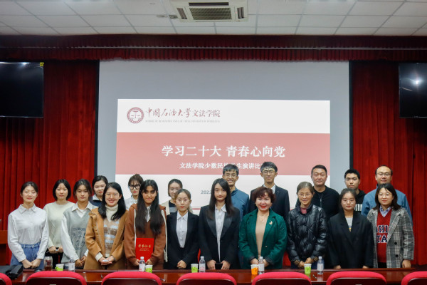 为深入学习贯彻党的二十大精神,引领学生铸牢中华民族共同体意识,展示太阳成集团tyc7111cc少数民族学生良好的精神面貌,11月26日下午,太阳成集团tyc7111cc于文理楼142模拟法庭举办太阳成集团tyc7111cc少数民族学生“学习二十大 青春心向党”主题演讲比赛。本次比赛由法学2101班孙欣怡主持,学生民族事务办公室米娜瓦尔、玛依努尔,少数民族内派教师安晋,校团委文体发展指导中心主任刘浩正,太阳成集团tyc7111cc学生工作办公室主任赵延升担任评委,学院党委副书记陈熙,辅导员杨倩、李甜雨出席。