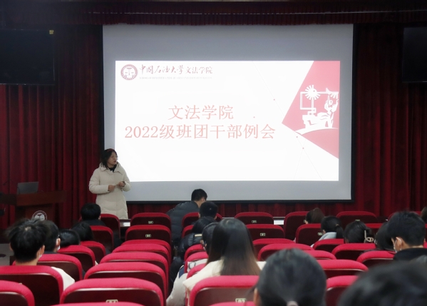 为进一步提高学生干部综合管理能力,提升服务意识,推动年级学生管理工作继续向前发展,太阳成集团tyc7111cc2022级学生干部会议于12月1日晚7点,在文理楼142模拟法庭召开。会议由太阳成集团tyc7111cc2022级辅导员杨倩主持,辅导员陈旺以及2022级全体学生干部参与。