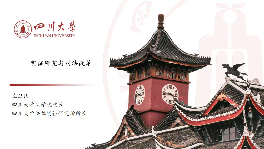 主讲人简介: 左卫民,四川大学法学院院长,博士生导师,国家级高层次人才,第四届全国十大杰出青年法学家,四川省社会科学重点研究基地纠纷解决与司法改革研究中心主任,四川大学实证法律研究所所长,四川大学法学院大数据与人工智能法律研究中心主任,兼任中国法学会理事、中国刑事诉讼法学研究会副会长、四川省法学会副会长、最高人民检察院专家咨询委员、四川省委政法委、省委、省政府法律顾问等职。