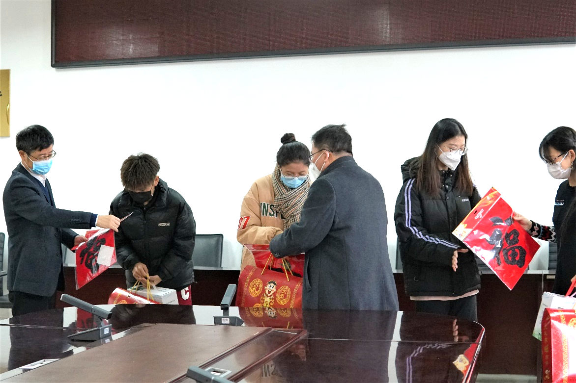 1月13日,院长王学栋、党委书记姚成郡、副院长冷凌、副书记陈熙以及辅导员代表在文理楼358与春节留校学生亲切座谈。院领导与学生逐一交流,深入了解其在校学习生活情况,勉励学生充分利用假期时间,总结经验、做好规划、加强锻炼、科学防护,为新的一年充电蓄能,并叮嘱他们与家人和老师保持联系,注意人身财产安全等。随后,学院为学生送上暖心大礼包和新年红包,让留校学生感受到“家”的温暖。