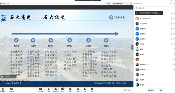 活动伊始,张润润以共享屏幕的方式,向全体与会师生详细介绍了石大的地理位置、石大校史以及杰出校友,让全体师生对石大有了初步了解,又对石大的特色专业以及优势学科作了详细报告,让全体师生对石大的以石油领域为主导的各个学科有了更加深入的了解;与此同时,队长赵中平对石大丰富的校园生活、优美的校园环境、浓厚的学习氛围等方面进行了详细讲解,得到了与会师生的集体认可。对石大的介绍结束后,与会学生积极提出自己的疑问,小队成员对学生的问题作了详尽的回答,学生对石大的好感与兴趣不断增加。队员齐寒也对学生们积极备战高考提出了一些建议,分享了对待考试、课余生活以及学习方法等诸多方面的经验供师生参考。会议最后,赵中平建立了中国石油大学(华东)QQ交流群,并将中国石油大学(华东)招生计划、石大官网、石大微信公众号分享至群内,供师生及时了解招生信息、专业建设等重要资料。临近会议结束,小队成员集体向全体师生表达了真挚的谢意,并向全体学生献上了高考必胜的真诚祝福。