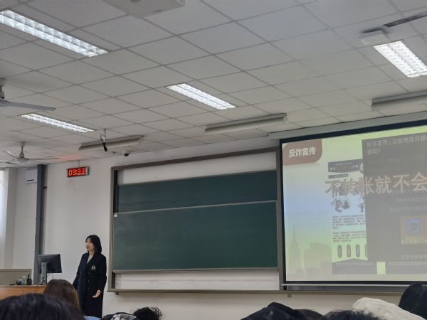 随后,李甜雨指出,在校园内电动车给充电存在的风险与隐患,要求学生们安全充电,避免隐患。同时指出,良好的宿舍环境有利于学生们的身心健康,在学习的同时一定要注意宿舍的卫生,用电安全,不用高功率电器,定期打扫宿舍卫生。针对马上到来的期末考试延迟考,李甜雨希望2021级的每个学生可以做到诚信考试,杜绝作弊,并讲述了考试作弊的危害,她期望每个学生都可以认真复习,考出一个理想的好成绩。每到开学季,高校电信诈骗频发,李甜雨提出,“不转账就不会被骗”,呼吁学生们在使用网络时,一定要格外注重自己的财产安全,提高警惕,不轻易给陌生人转账,不随意点开陌生链接,避免自己的财产遭到损失。