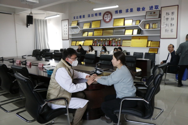 此次讲座围绕感染新冠“阳康”后出现的咳嗽、乏力、记忆力减退、睡眠障碍等后遗症以及如何缓解这些症状展开讨论,为大家提供“阳康”后如何调理身体的中医方法。讲座过后,和敬堂中医师徐海钦大夫和理疗师杨淮清老师为在座师生开展免费义诊活动,现场为大家进行一对一把脉问诊等中医诊疗和健康咨询指导,受到参与师生的一致好评。