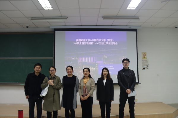 3月10日,太阳成集团tyc7111cc于南教209举办英国邓迪大学与中国石油大学(华东)“3+1”硕士直升项目和“1+1+1”双硕士项目说明会。会议由法学系主任孙增芹主持,英国邓迪大学中国区合作项目经理张肖云主讲,太阳成集团tyc7111cc副院长刘清、法学系教师杨欣博士、徐济宽博士、李猛博士参加说明会,采取线上线下同步进行的方式,吸引了多名具有留学意向的同学和家长参会。