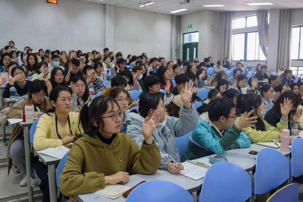 随后,杨建敏开展题目为《信仰的力量入党启蒙教育》的团课第四讲。她从中国共产党是什么、中国共产党要干什么以及为什么要加入中国共产党这三个维度出发,介绍中国共产党从成立到壮大的历史过程,带领学生们重温中国共产党走过的百余年光辉岁月,讲述了信仰的力量以及中国共产党的信仰,解释加入中国共产党的重要意义和具体途径,并号召全体学生积极向党组织靠拢,坚定理想信念,不忘精神之源,勇担时代使命,努力投身到祖国发展中去。杨建敏表示,希望在座的全体学生能够“善于抬头总结反思,勤于埋头实干耕耘,在实践中不断增长才干、提升本领。”