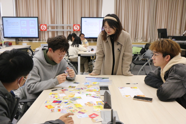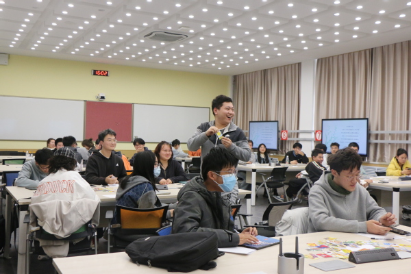活动最后,杨倩组织开展“故事接龙”环节。被选中的第一位学生根据自己手中的OH卡编一个故事开头,之后每一位学生根据手中OH卡将这个故事延续下去,直到最后一位学生为止。其间,现场气氛一度高涨,各种奇思妙想涌现出来,碰撞出智慧的火花,引得在场所有人掌声不断。