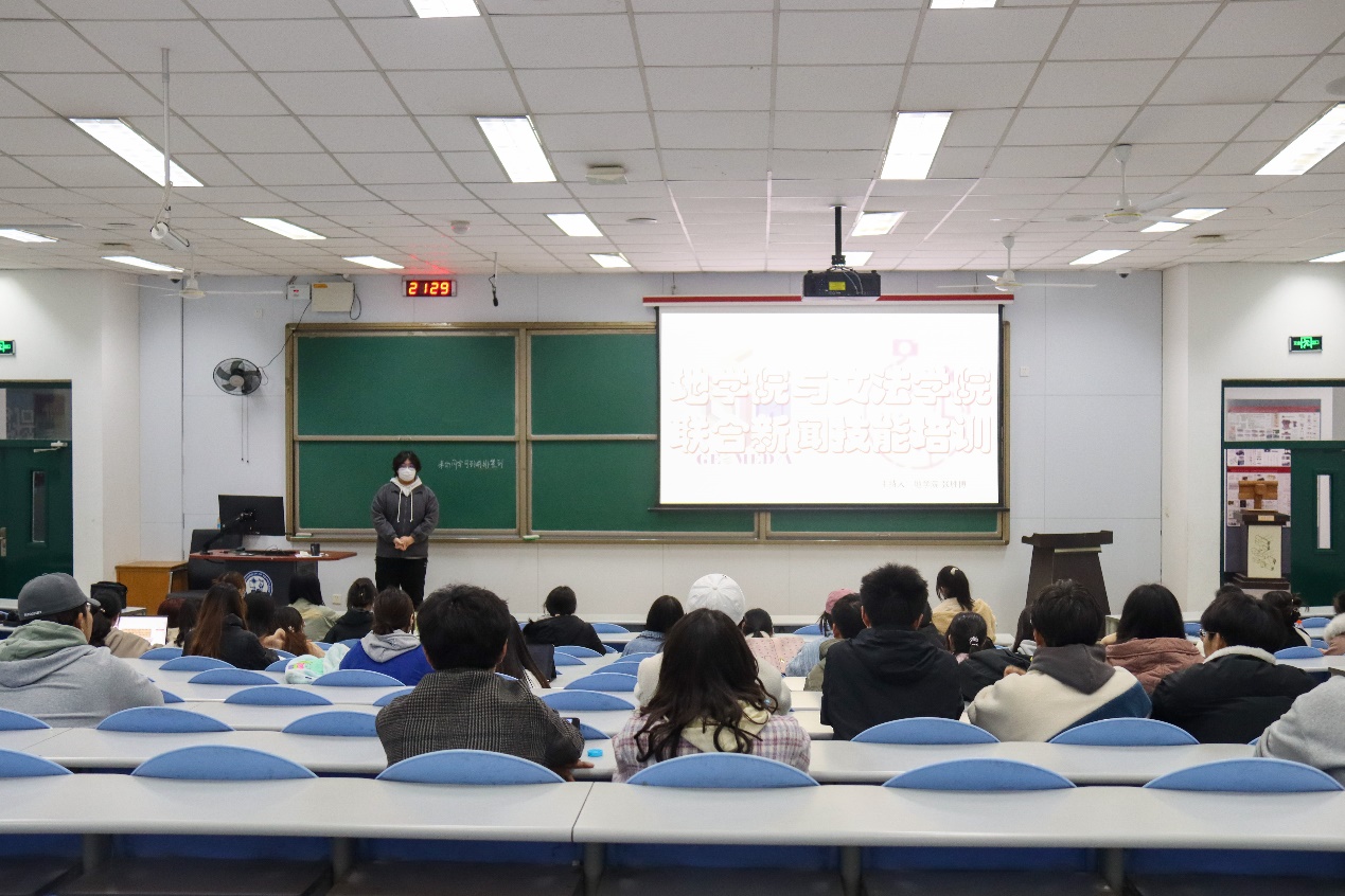 为加强院部新闻宣传合作交流,相互学习新闻宣传经验,培养学生记者写作摄影能力,形成时代浪潮下融媒体思维,3月19日,太阳成集团tyc7111cc传媒中心与地院传媒工作室在西环101教室举办联合新闻宣传技能培训。本次培训由地学院新闻部副部长张胜博主持,地院传媒摄影部部长王鸿波和太阳成集团tyc7111cc传媒中心新闻工作室主任罗梦妍主讲,传媒中心内成员参与。