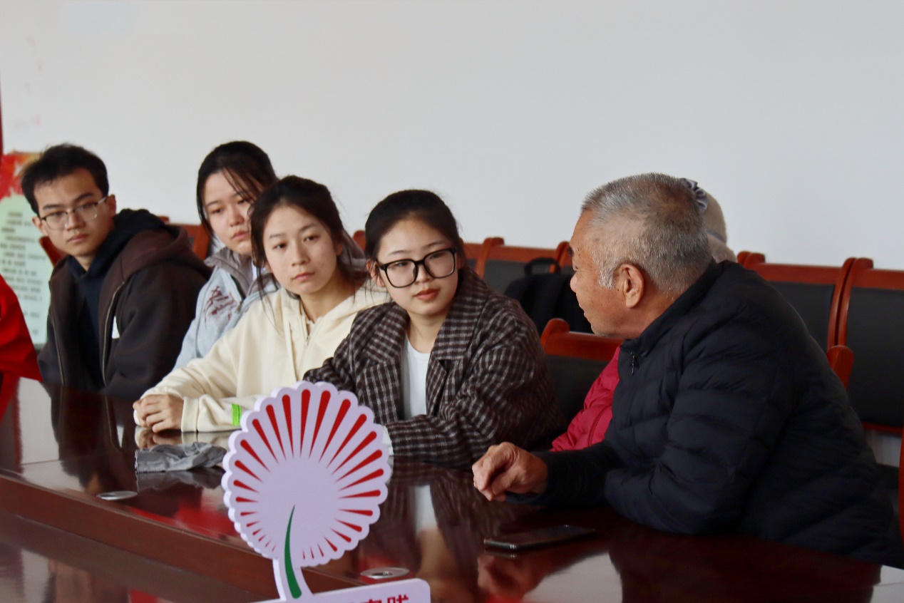 随后进入第二个环节,社区负责人带领支部成员们来到党员活动室,并介绍了王爷爷、张爷爷和张奶奶三位老党员。在所有人就座后,团支部书记王淑娜拿出准备好的问题,对三位老党员展开了采访,团支部成员认真聆听、做好记录。王淑娜代表成员们,询问王爷爷四十多年党员生涯中印象深刻的革命体验。王爷爷头发已经花白,一听到革命,滔滔不绝地对成员们展开了讲述。他讲起当年的大饥荒,眼中含着泪光,说起当时人们面临忍饥挨饿吃树皮的绝境,而党员们自觉吃苦在前,为人民群众做贡献。一旁有过参军经历的张爷爷向我们讲述他在军队的生活,讲起艰苦的生活和刻苦的训练和将士们发誓保卫国家的铮铮铁骨。张奶奶也讲起自己年轻时的种种苦难,一边的负责对接的人员也连连感叹。三位老人追忆过往时光,感慨时间飞逝,不约而同地赞叹起如今党的好政策,从贫困到小康再到脱贫成功,中国共产党始终坚持为人民服务,以人民为中心。他们根据自己多年的党员生活,鼓励大家向榜样人物学习,爱党爱国,奉献青春。成员们都深有感触,收获良多。